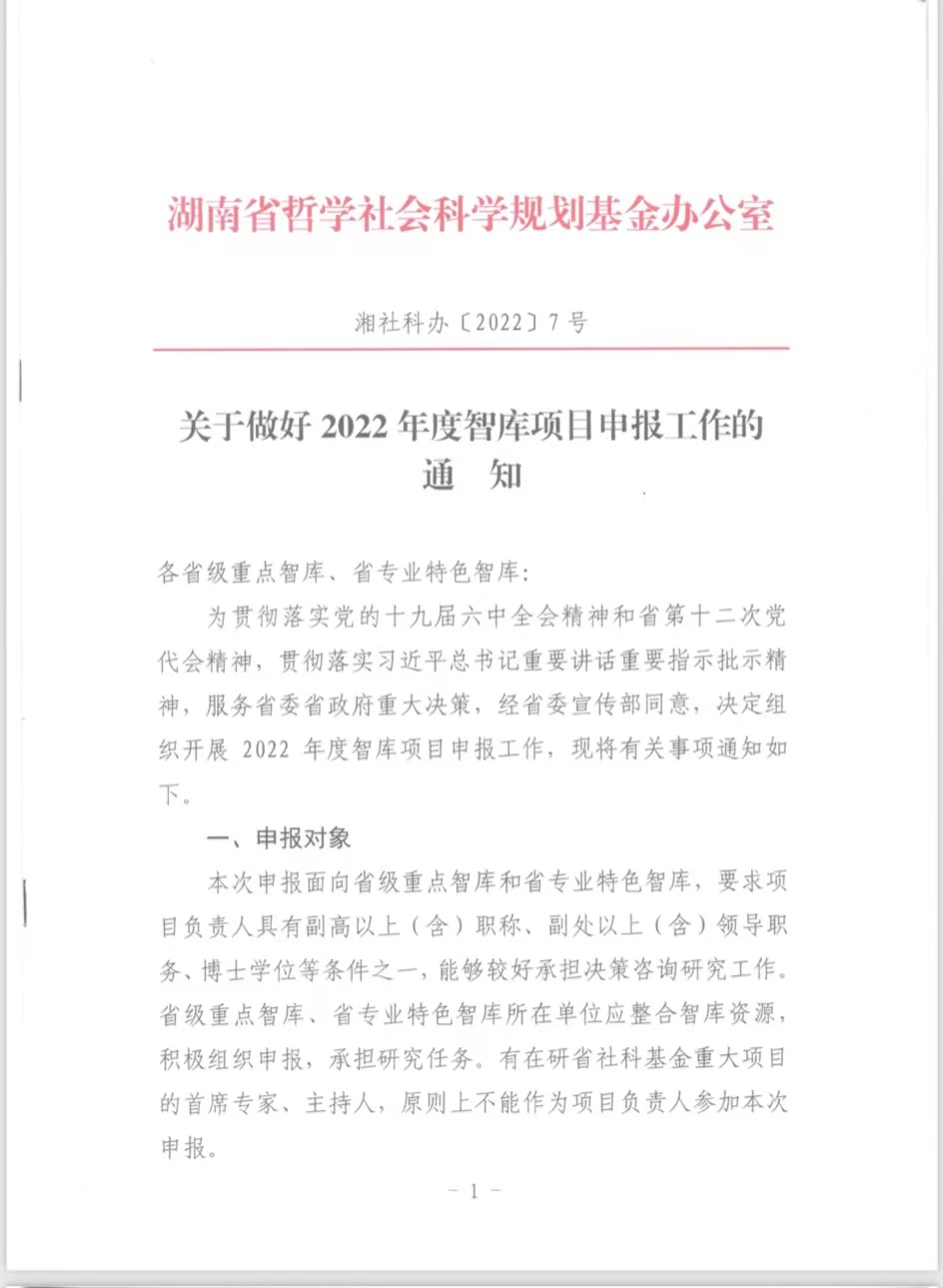 关于做好2022年度智库项目申报工作的通知