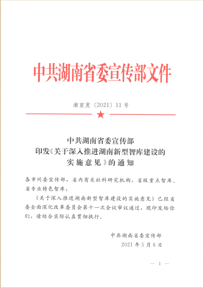 湘宣发【2021】11号中共湖南省委宣传部印发《关于深入推进湖南新型智库建设的实施意见》的通知.pdf